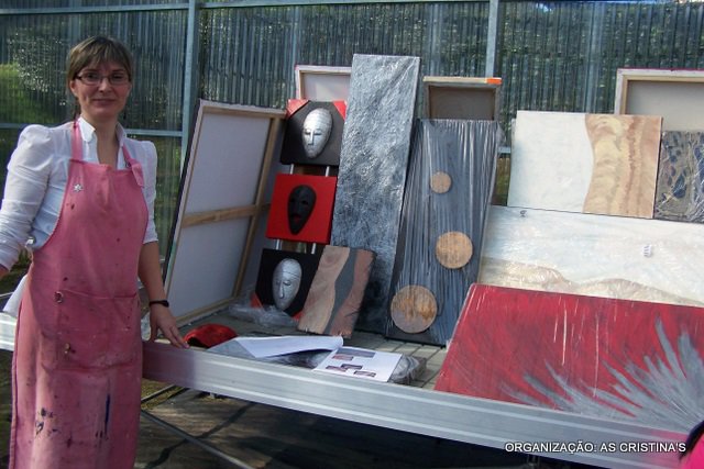 Agora já estou a trabalhar em telas mais pequenas e mais adaptadas a estas feiras. Já não venho carregada com 30 telas, 5 ou 6 e porque já estão a precisar de "retoque".